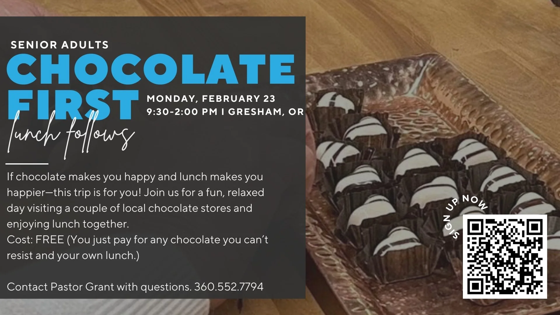 We love to keep our Senior Adults active and in community with one another. We try to schedule monthly excursions around the area. Some of our upcoming excursions in 2025 are a trip to the Hulda Klager Lilac Gardens, a trip to NW Trek Wildlife Adventure, a couple Summer BBQ’s, going to a Mariner’s game, a trip to Friday Harbor, and a Christmas Dinner Cruise. These events are always open for anyone to participate. Many of them do require pre-registration and a minimal admission fee.